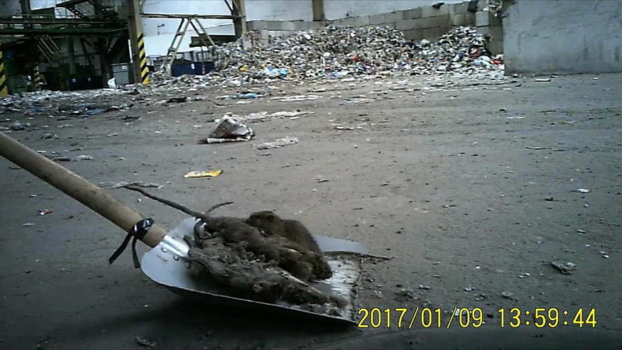 Pás byl obalený letitou špínou, kterou nikdy nikdo nemyje a strašlivě to tam smrdělo. Cestou zpátky do administrativní budovy jsme viděli cosi se mihnout, nějaký ocásek mezi haldami odpadků. Pan Nožík to okomentoval: „Jsou tady potkani, občas nějaký vyskočí na pás, ale bát se nemusíte, jsou to plachá zvířata, zatím nikoho nepokousali a taky jsme tu dlouho neměli žloutenku ani jinou takovou nemoc.“