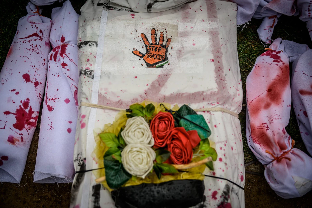 „Být Palestinec znamená prožít celý svůj život jako uprchlík, zbavený důstojnosti a práva na návrat domů. Znamená to, že váš život, rodina, komunita a domov jsou neustále v ohrožení. Vaši blízcí mohou být kdykoli odvedeni a uvrženi do izraelské věznice – na dobu neurčitou. Vaši půdu vám mohou kdykoli bez váhání ukrást, anektovat a kolonizovat. V Palestině neexistuje žádná svoboda. Žádné bezpečné útočiště,“ citovala umělkyně Yara Abu Aataya v jednom z prvních projevů palestinského ministra zahraničních věcí Riyada al-Malikiho.