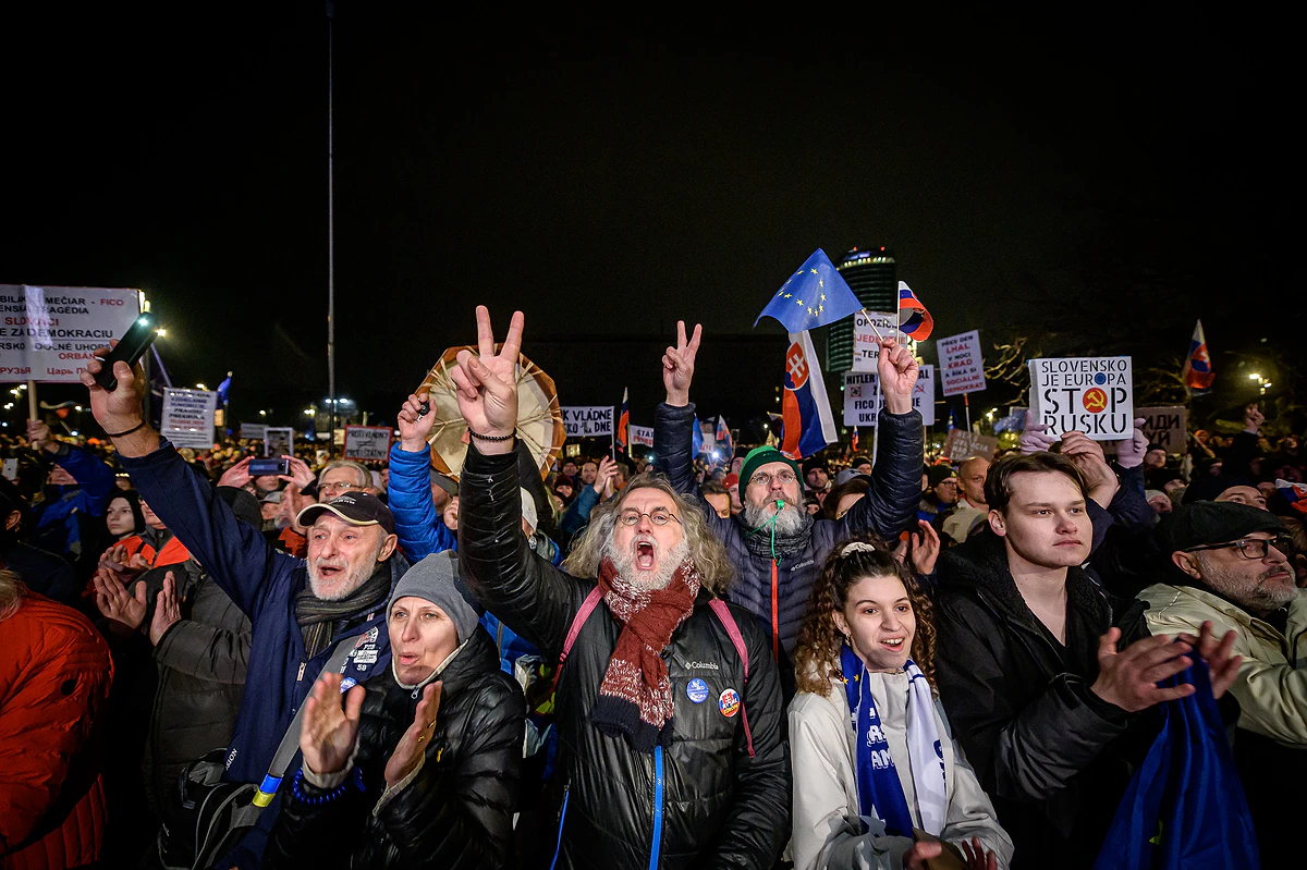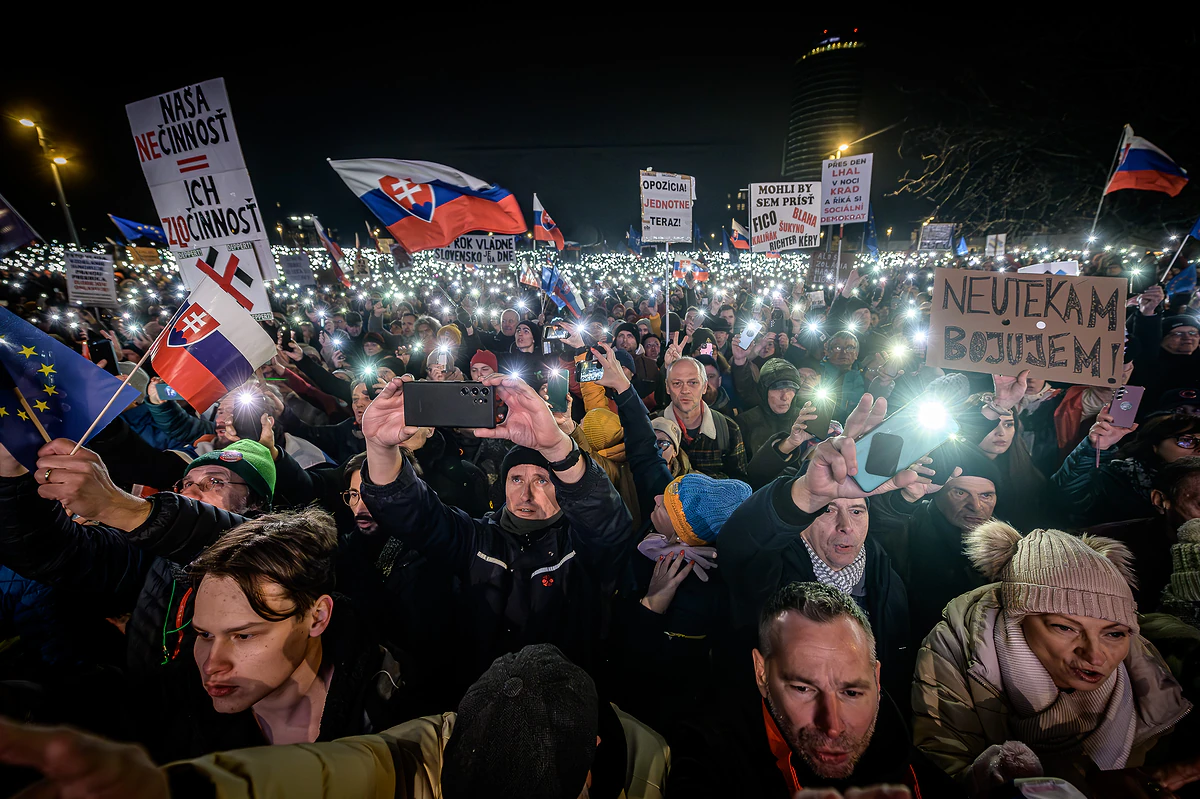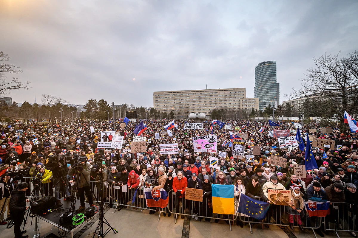 Do ulic tří desítek slovenských měst opět vyšly desetitisíce lidí. Protestovali proti vládě Roberta Fica. Protestující se obávají, že by je slovenská vláda mohla vyvést z Evropské unie a NATO. O tyto obavy se v lednu postaral především Tibor Gašpar ze Směru, který prohlásil, že by Slovensko mohlo z těchto mezinárodních institucí vystoupit. Na klidu jim nepřidala ani cesta slovenského premiéra Fica do Moskvy krátce před vánočními svátky. Shovívavý postoj Roberta Fica a jeho spolupracovníků k Rusku je dlouhodobě zdrojem nervozity mezi určitými segmenty slovenské společnosti.