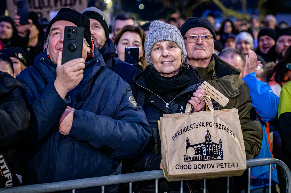 V pátek večer se především na bratislavském Náměstí Svobody sešlo přes 40 tisíc lidí. Protestujícím vadila především mezinárodní orientace Ficova vládního kabinetu a zaznívaly i výrazy o kolaborantech a ruských agentech. Na demonstraci promluvil i mladý gymnaziální student Simon Omaník, který nedávno při předávání státních cen odmítl podat ruku prezidentu Pellegrinimu. Ve svém projevu nabádal přítomné k odvaze vyjádřit svůj osobní postoj a poděkoval několika studentským iniciativám za jejich protestní akce.