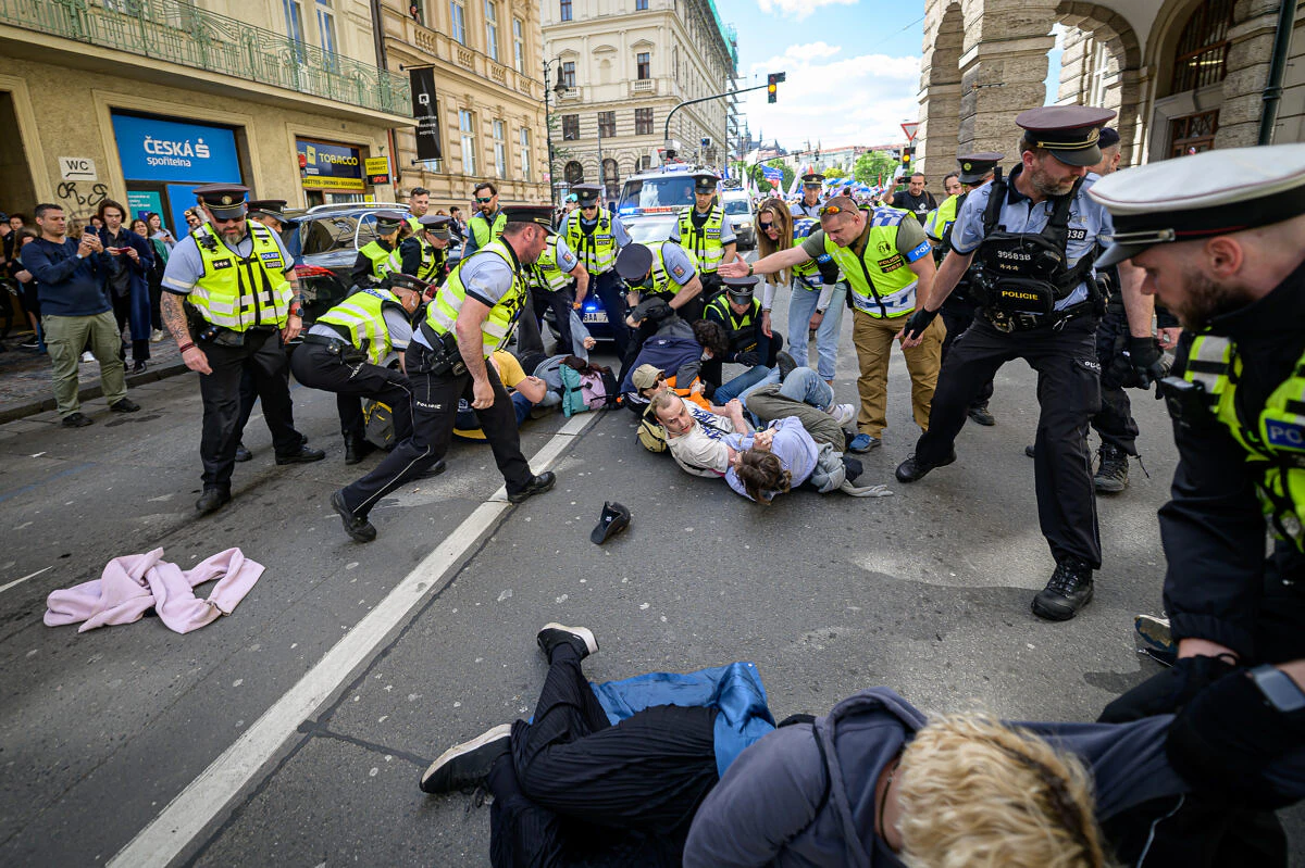 Před třetí hodinou se účastníci demonstrace ve dvou průvodech rozešli směrem k filozofické fakultě na Palachově náměstí, aby zablokovali Pochod pro život, který vyšel v počtu několika set lidí z Hradčanského náměstí. První malou blokádu na křižovatce na náměstí Jana Palacha rozehnala policie, jež účastníky, kteří se odmítli legitimovat, zadržela. Další skupinky blokujících si sedli na zem v Kaprově ulici a přilehlých ulicích a Pochod pro život tak zůstal od tří hodin odpoledne zablokovaný.