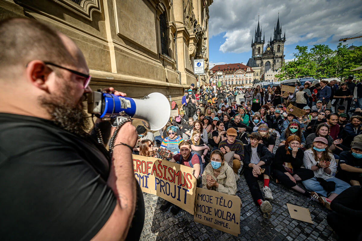 Přes tisícovku odpůrců Hnutí pro život a jeho boji proti interrupcím se v sobotu sešlo ve 13:00 na Jungmannově náměstí. „Máme tu co dočinění s hnutím, který se dnes sice tváří, jako mírumilovná iniciativa, která chce jen pomáhat dětem a rodinám pod sloganem Nesoudíme, pomáháme. Nesmíme ale zapomínat na to, že je to to samé hnutí, které nálepkuje ženy podstupující interrupci jako bezcitné mrchy a chce je zařadit na seznam špatných žen,“ uvedl jeden z řečníků Matyáš Emanuel Nývlt z lidskoprávního studentského spolku Mater Nostra, který působí na Právnické fakultě Univerzity Karlovy. Dodal také, že se jedná o to samé hnutí, které roky lobbuje za tvrdou kriminalizaci interrupcí a které kritizovalo zaslání nouzových antikoncepcí pro ruskými vojáky znásilněné ukrajinské ženy a navrhovalo místo toho nákup houkadel nebo pepřových sprejů.