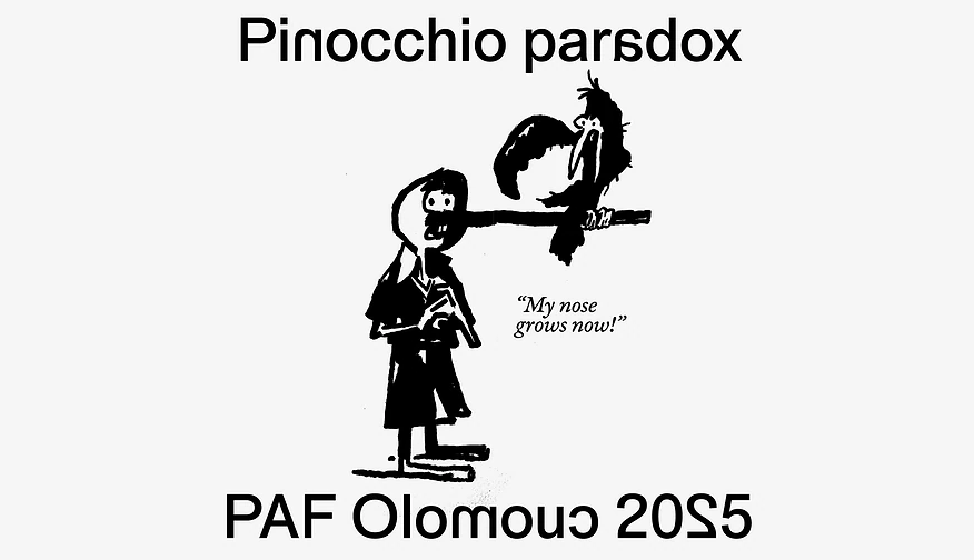 Všichni víme, že nos dřevěného kluka Pinocchia roste, když lže. Tvrzení „My nose grows now!“ (Můj nos právě roste!) je však logickým paradoxem: pokud Pinocchio lže, jeho nos se prodlouží – tím se ale jeho tvrzení stává pravdivým a přestává být lží. Absurdní prohlášení tak představuje variantu lhářského paradoxu a vyvolává otázky spojené s ověřitelností sdělení. PAF Olomouc proměňuje větu o rostoucím nose v nadsázku i znepokojivou sondu do současného soukolí lživých rozporů, z nichž je často obtížné nalézt cestu ven.