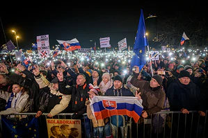 Na Slovensku se opět sešly desítky tisíc lidí, aby vyjádřily svůj nesouhlas s vládou Roberta Fica. Mají strach, že je premiér chce vyvést z mezinárodních institucí jako Evropská unie či NATO.