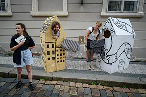 Umělecký a aktivistický kolektiv Jezevky se rozhodl upozornit na nedostatečnou odezvu státu na stále hlubší krizi bydlení prostřednictvím happeningu.