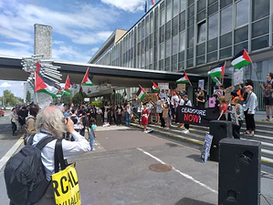 Kolem dvou set osob demonstrovalo v neděli odpoledne před budovou ČT. Vyjadřovali svůj nesouhlas s tím, jak Česká televize referuje o masakru v Gaze.