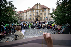 V neděli večer se před pražským magistrátem už podruhé sešli sociální pracovníci, aby protestovali proti novým pravidlům na přidělování bytů, které prosazuje Alexandra Udženija.
